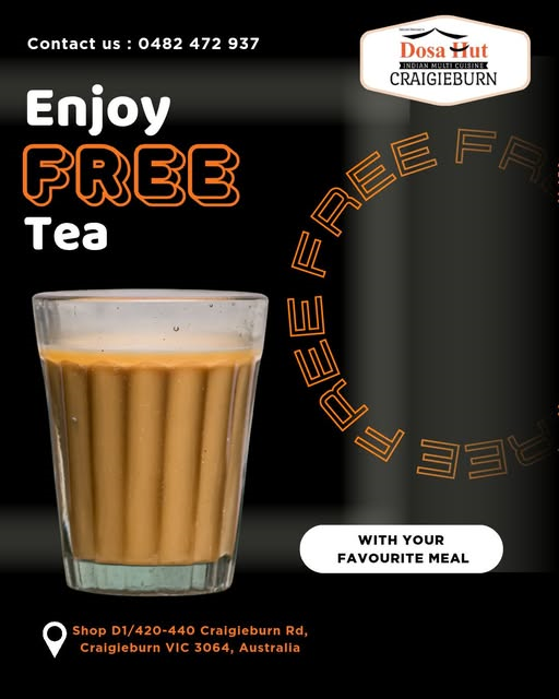 Warm Up Your Day: Free Tea with Every Meal at Dosa Hut Craigieburn